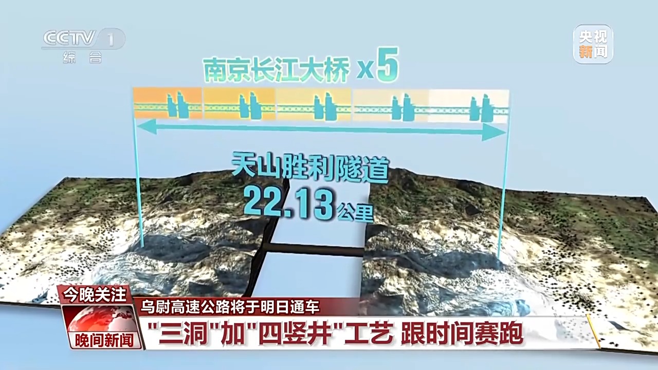 全长22.13公里,相当于南京五座长江大桥的长度总和。在天山开辟这样一条隧道,中国建设者是如何攻克这个难关的呢?迪与以往隧道开挖通常采用“双孔开挖”方式不同,此次天山胜利隧道采用“三孔”“四竖井”工艺,以跟上时间。
